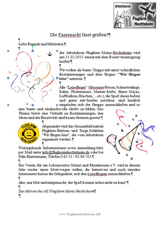 ![]() Gestaltung durch den Arbeitskreis Fluglärm Hechtsheim |